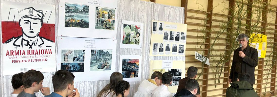 VII Szkolna Sesja Historyczna 28 marca 2019 roku już po raz siódmy w naszej szkole odbyła się Szkolna Sesja Historyczna pt. „Nie dajmy zginąć poległym” poświęcona żołnierzom antykomunistycznego podziemia. W sesji uczestniczyli nauczyciele z krajów partnerskich projektu Erasmus oraz przyjaciele szkoły. Czytaj więcej...